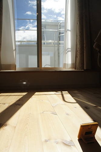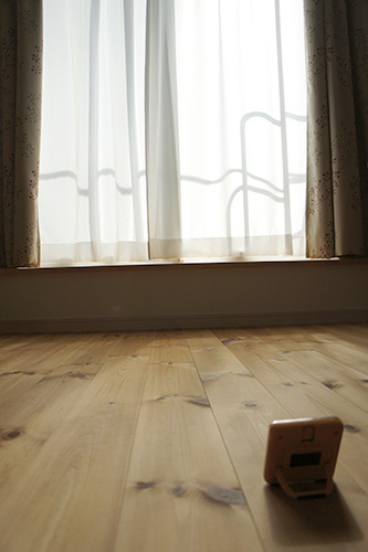 そもそもは無垢材の床が紫外線で変色しやすいということで対策のためにカーテンを探していましたが、ふつうの厚いカーテンでは閉めてしまうと部屋が暗くなり、観葉植物へも光が当たらなくなってしまうのが問題でした。