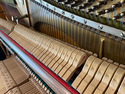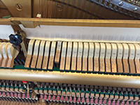 調律と内部の掃除、さらに弾いた際に音を止めるダンパーが落ちてくる勢いが強く、手にかかる衝撃が大きかったのでそこを調整して完了です。