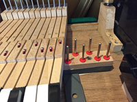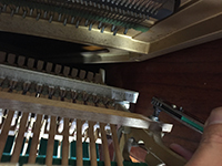 さらにハンマーの傾きや左右のズレを修正して、全てのハンマーが全ての弦をまっすぐ叩くように戻します。