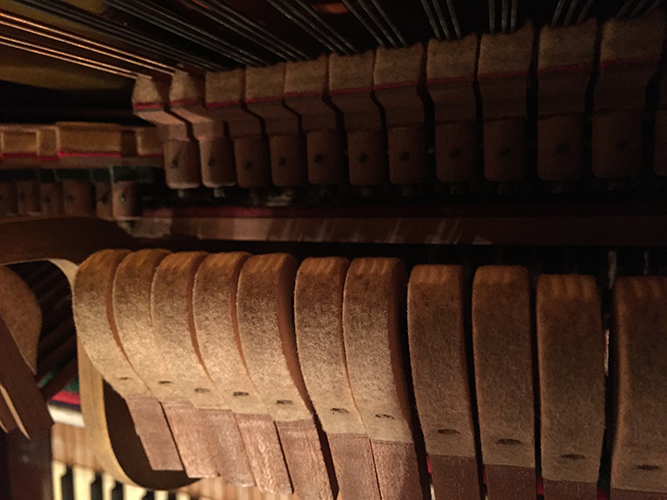 長年のご使用で潰れたハンマーにより音が粗くなっているため、今後は状態を見ながら「ハンマーファイリング」という整形作業を行っていく必要があります。