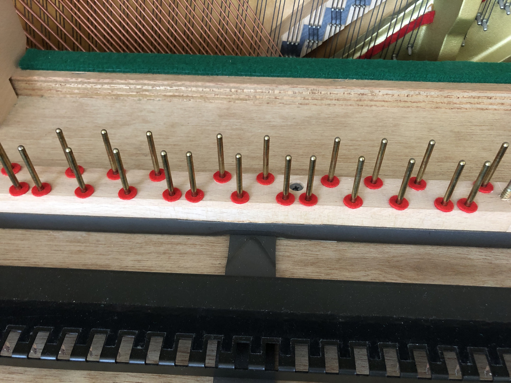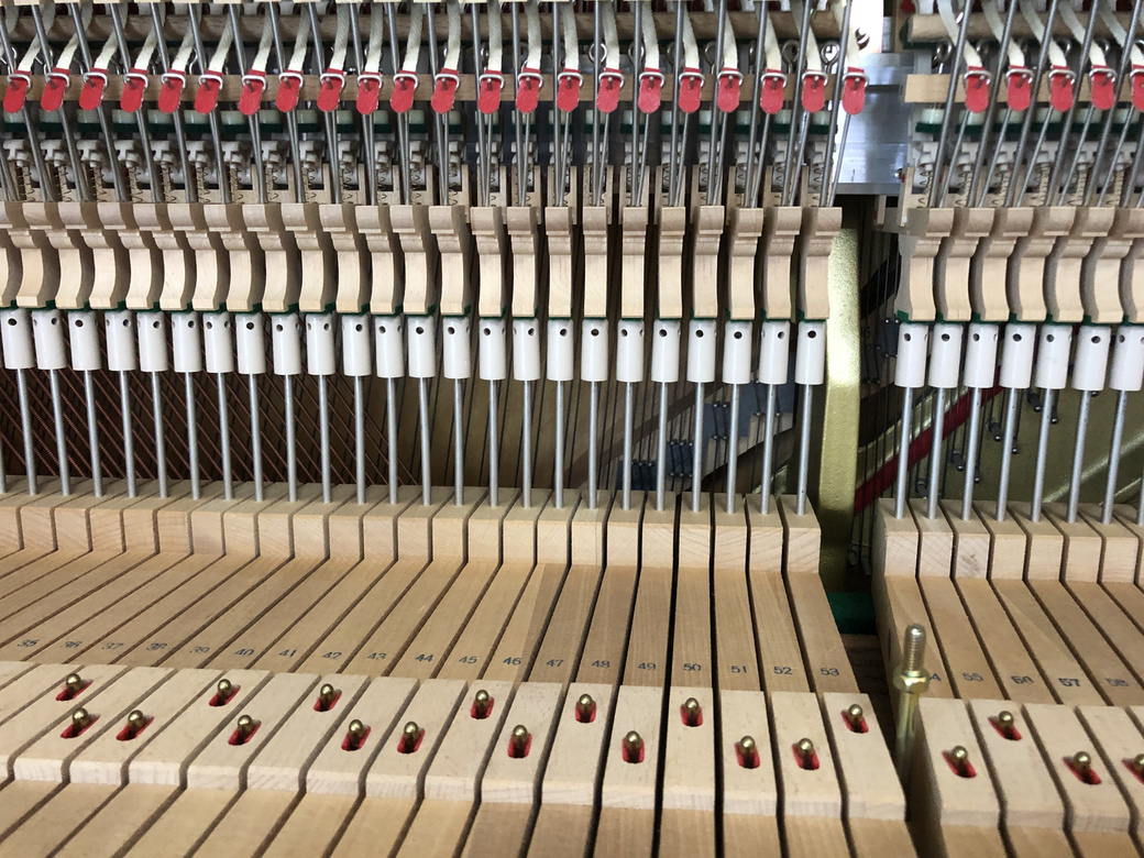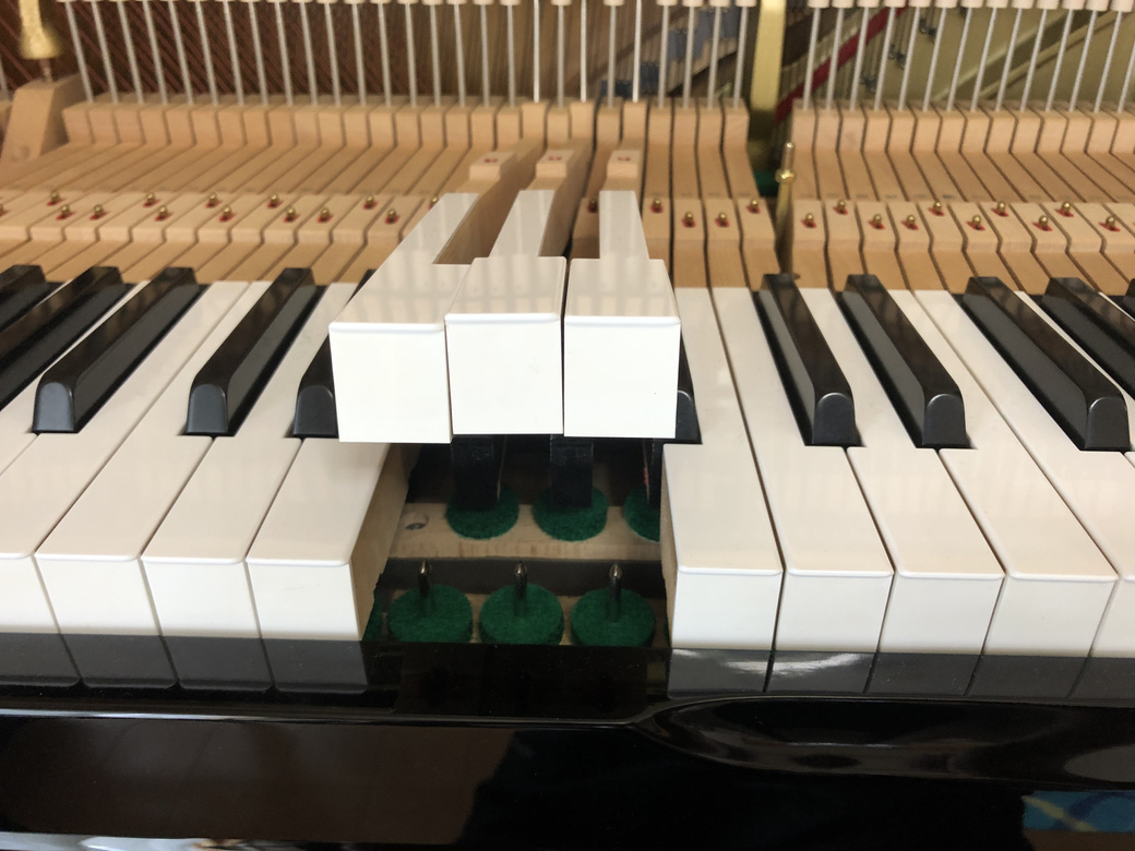 また、長年メンテンスされていなかったことにより鍵盤〜ハンマーまでの様々な部品の隙間が広がってしまっていて、鍵盤を押した際にハンマーに力が適切に伝わらず、思った通りの音が出せないタッチになっていました。