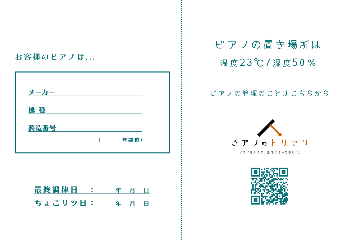 作業後、ピアノのモデル名や最終調律日を記入したポストカードをプレゼント!