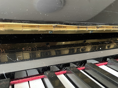 ピアノの金色の部分の真鍮は猫のおしっこがかかるとものすごいサビ方をします。そうなると基本的に部品は交換。場所によってはかなり高額になることも。