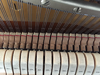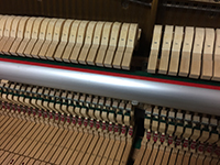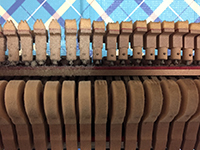 また、空き年数には関係なくこの年代のYAMAHAのアップライトピアノに多い「フレンジコード」という内部の紐が劣化により切れてしまっていたためタッチがふわふわとして連打がしづらく、バネが他の部品に当たって雑音もしています。