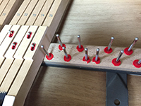 さらにハンマーの傾きや左右のズレを修正して、全てのハンマーが全ての弦をまっすぐ叩くように戻します。